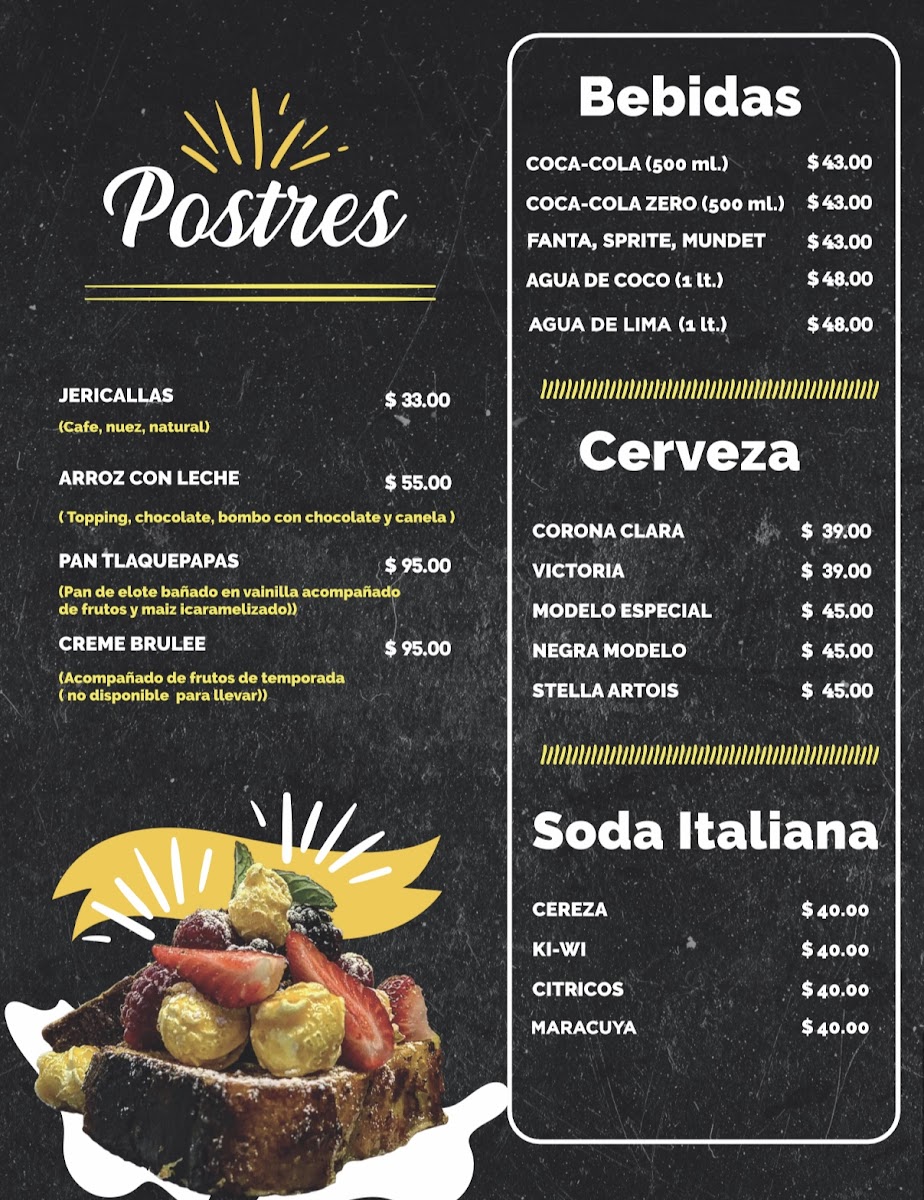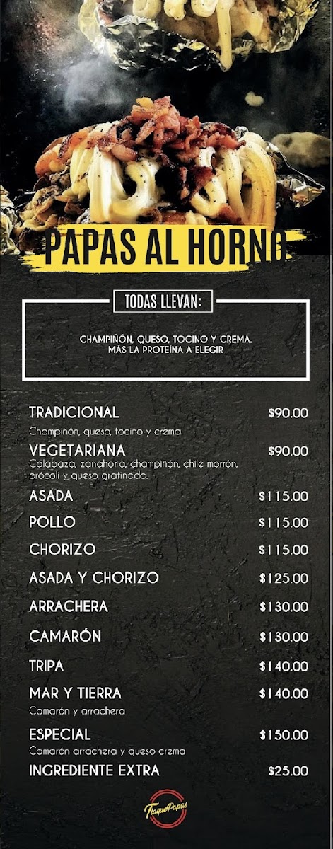 Tlaquepapas Menu
